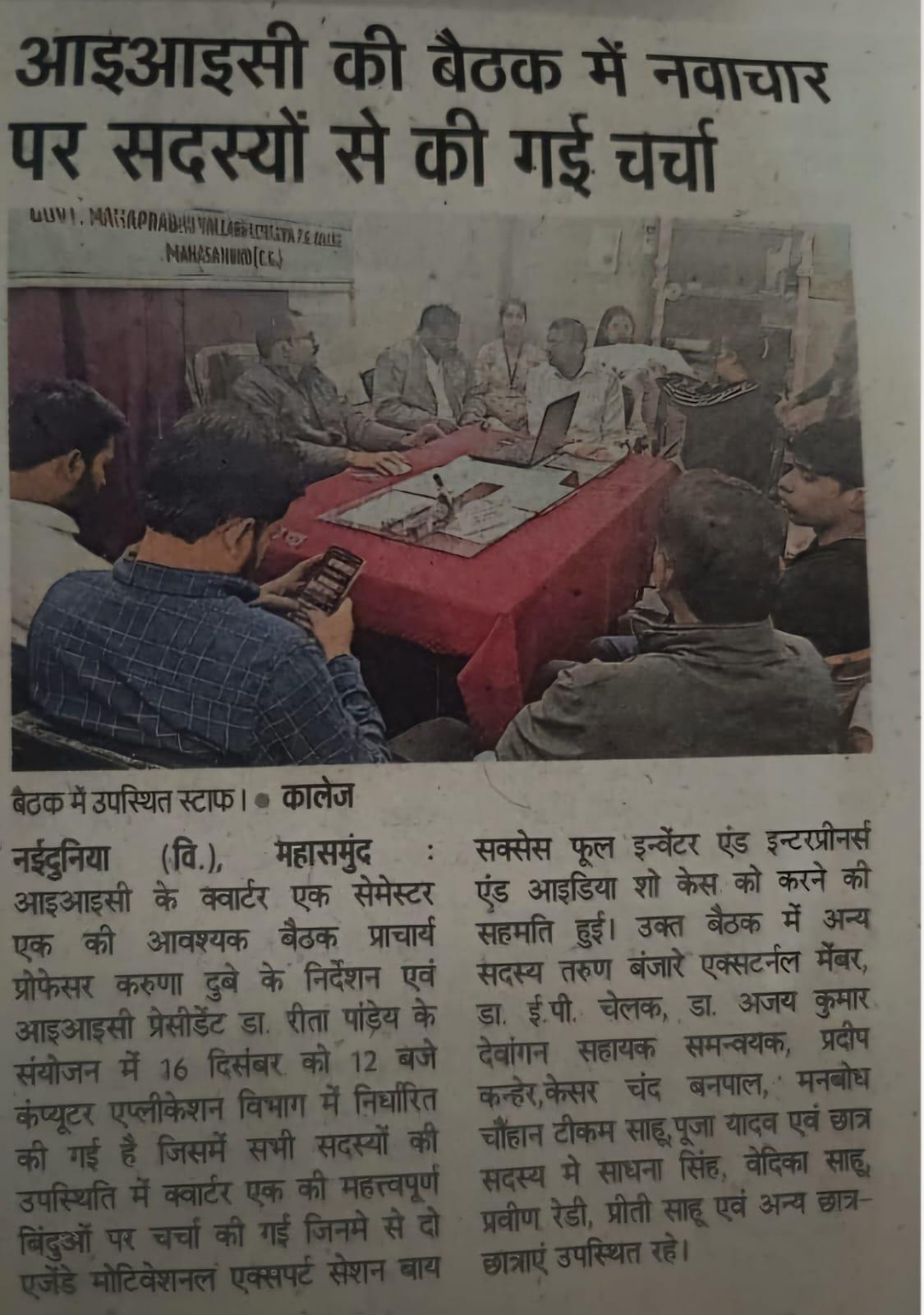 Registered under Section 2(f) of UGC Act Accredited Grade “B” by NAAC, BangaloreAffiliated to Pt. Ravishankar Shukla University, Raipur, (C.G)