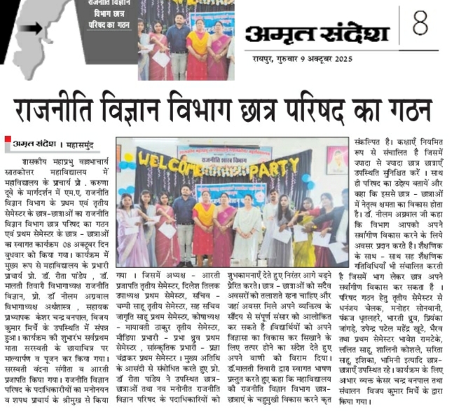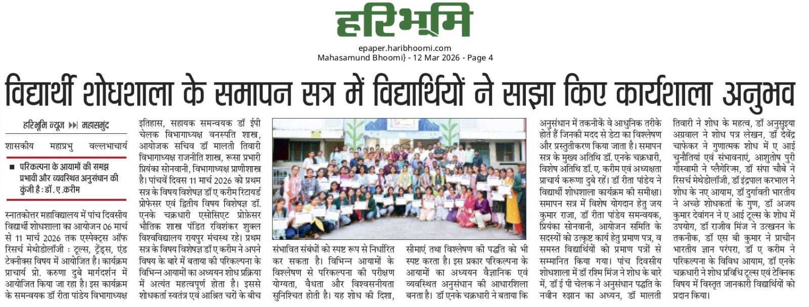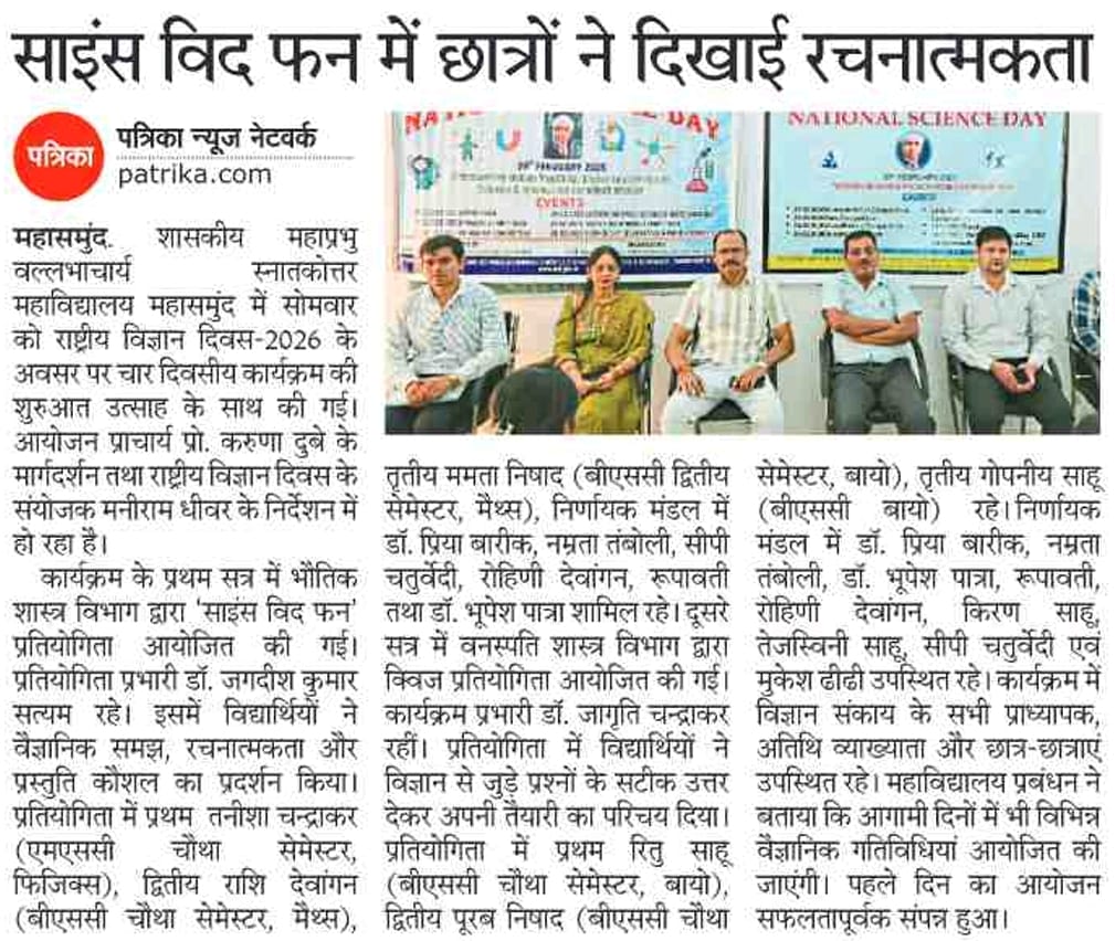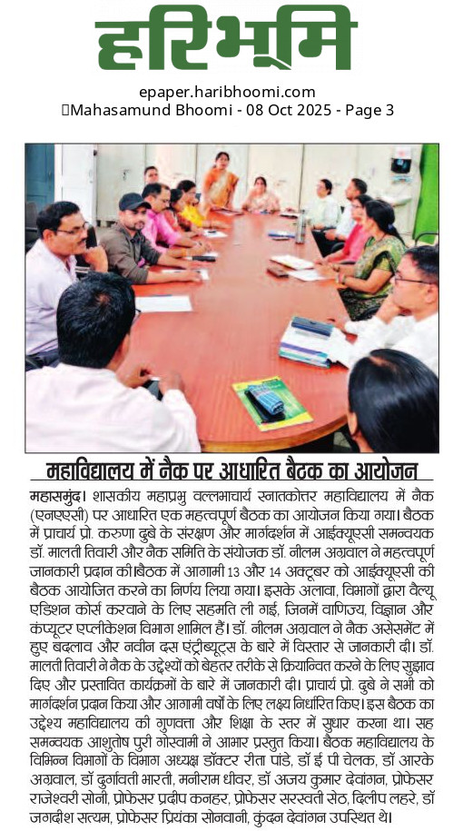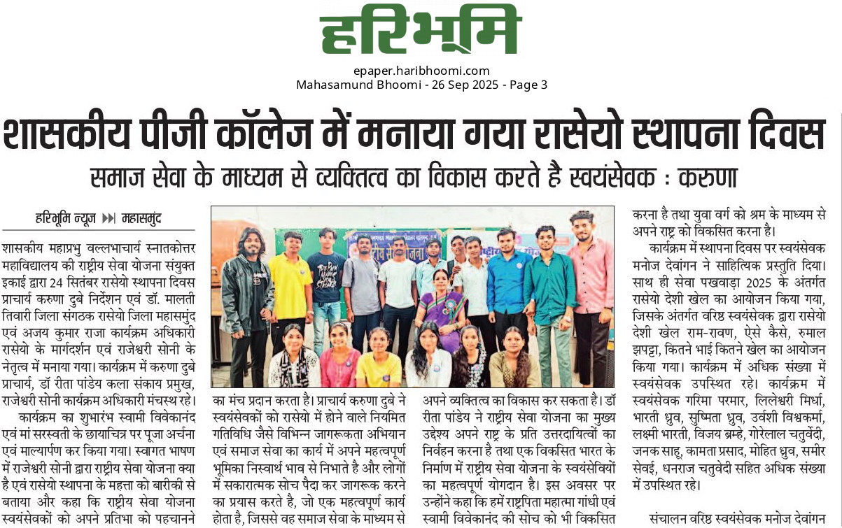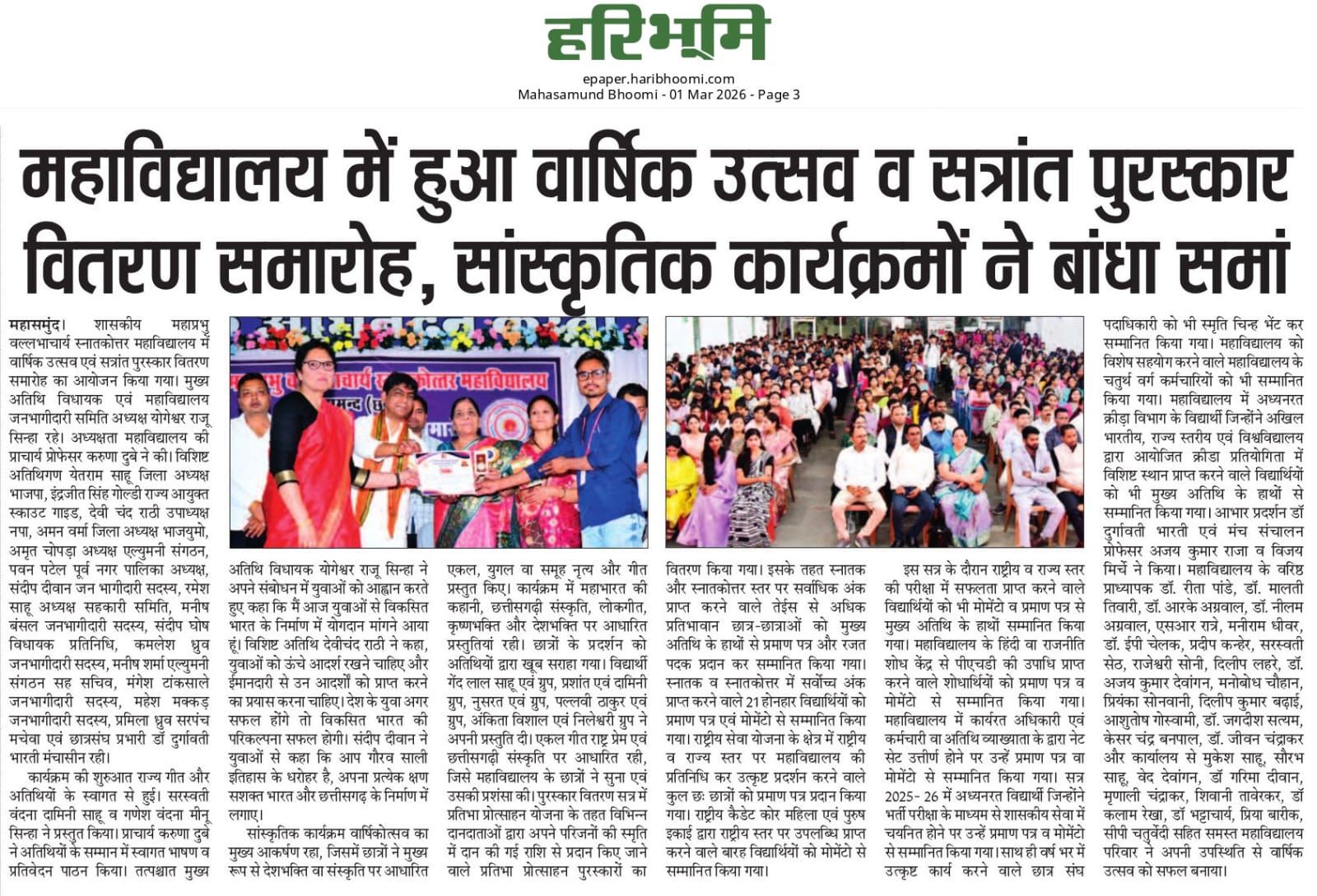 Govt. M.V.P.G. College Mahasamund District- Mahasamund (Chhattisgarh) Pin Code - 493445 Chhattisgarh