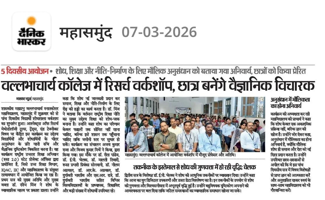 शासकीय महाप्रभु वल्लाभाचार्य स्नातकोत्तर महाविद्यालय, महासमुंद्, छतीसगढ़, भारत